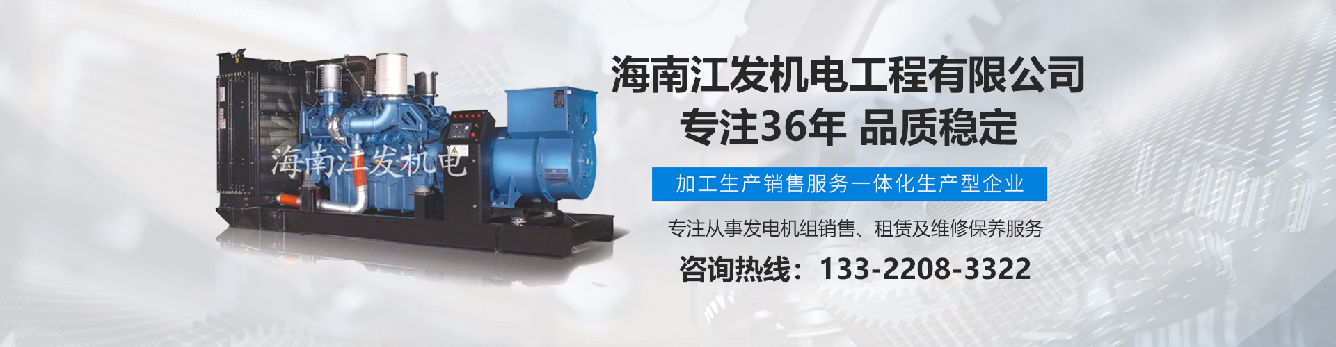 海南江發(fā)機(jī)電工程有限公司是海南經(jīng)營進(jìn)口、國產(chǎn)柴油發(fā)電機(jī)組、是海南較早、較大的銷售、租賃服務(wù)及維修保養(yǎng)專業(yè)機(jī)電公司。從1985年開始,公司勵(lì)精圖治、銳意進(jìn)取、不斷創(chuàng)新,不僅在海南機(jī)電行業(yè)領(lǐng)域中具有先進(jìn)技術(shù)、完美管理、誠信服務(wù),高超的產(chǎn)品質(zhì)量和性能,而且還有合理的產(chǎn)品性能價(jià)格比,令客戶滿意以及完善的支持保障。 在客戶心目中,江發(fā)公司不僅具有最好的企業(yè)信譽(yù),還是客戶最信賴的誠信單位,而且會(huì)帶給客戶永遠(yuǎn)的光明和豐厚回報(bào)。